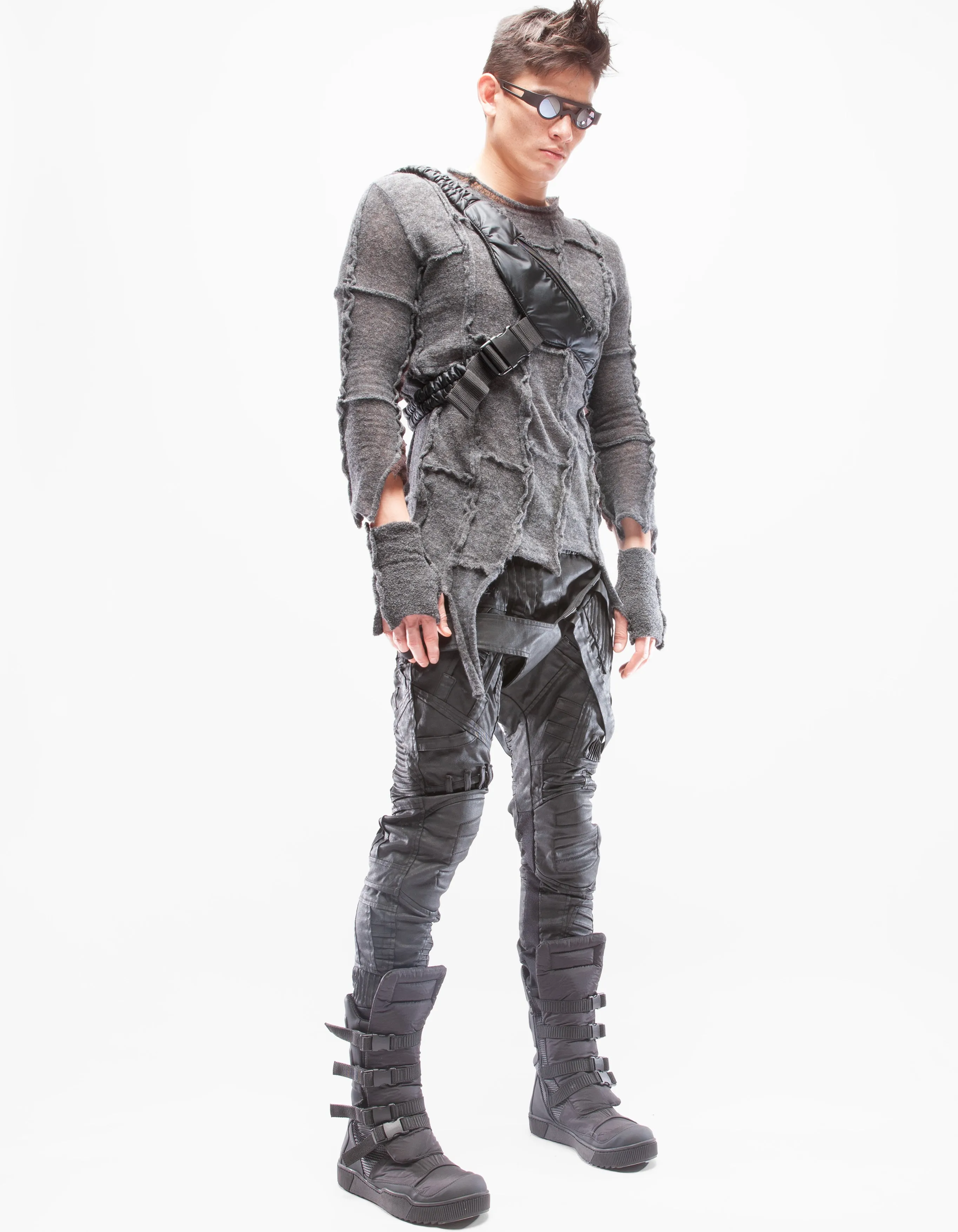 detailed fine knitted wool middle sleeve top